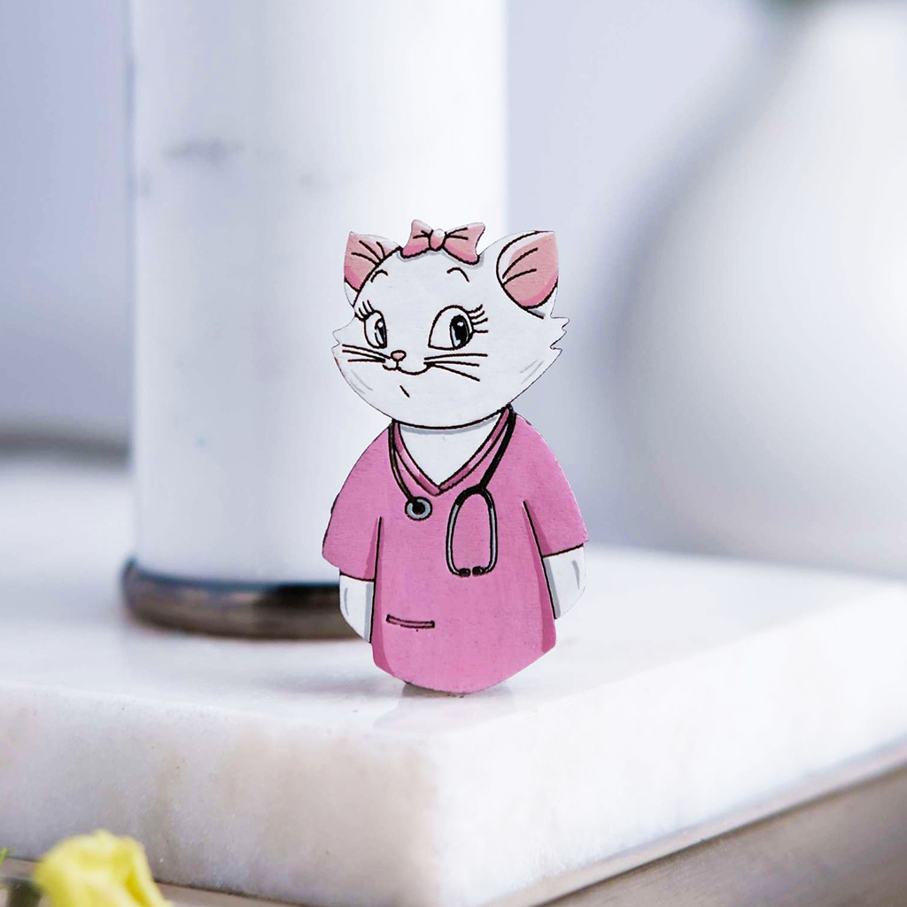 Деревянная брошь в виде милой кисуни с фонендоскопом выполнена в разных цветовых решениях!