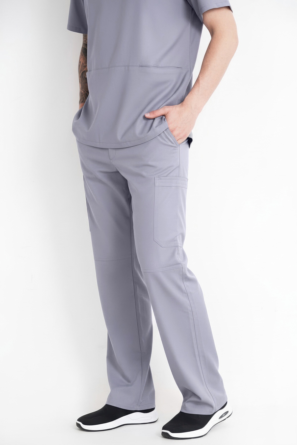Мужские медицинские брюки TZ610 бренда Tezis имеют прямой силуэт, функциональную внутреннюю кулиску, эластичный пояс с резинкой на спине, пять шлевок для ремня, ширинку на молнии с застежкой на пуговицу. Изделие дополнено шестью карманами: два передних боковых, правый двойной накладной с эластичной петлей и люверсом, левый прорезной и задний накладной.