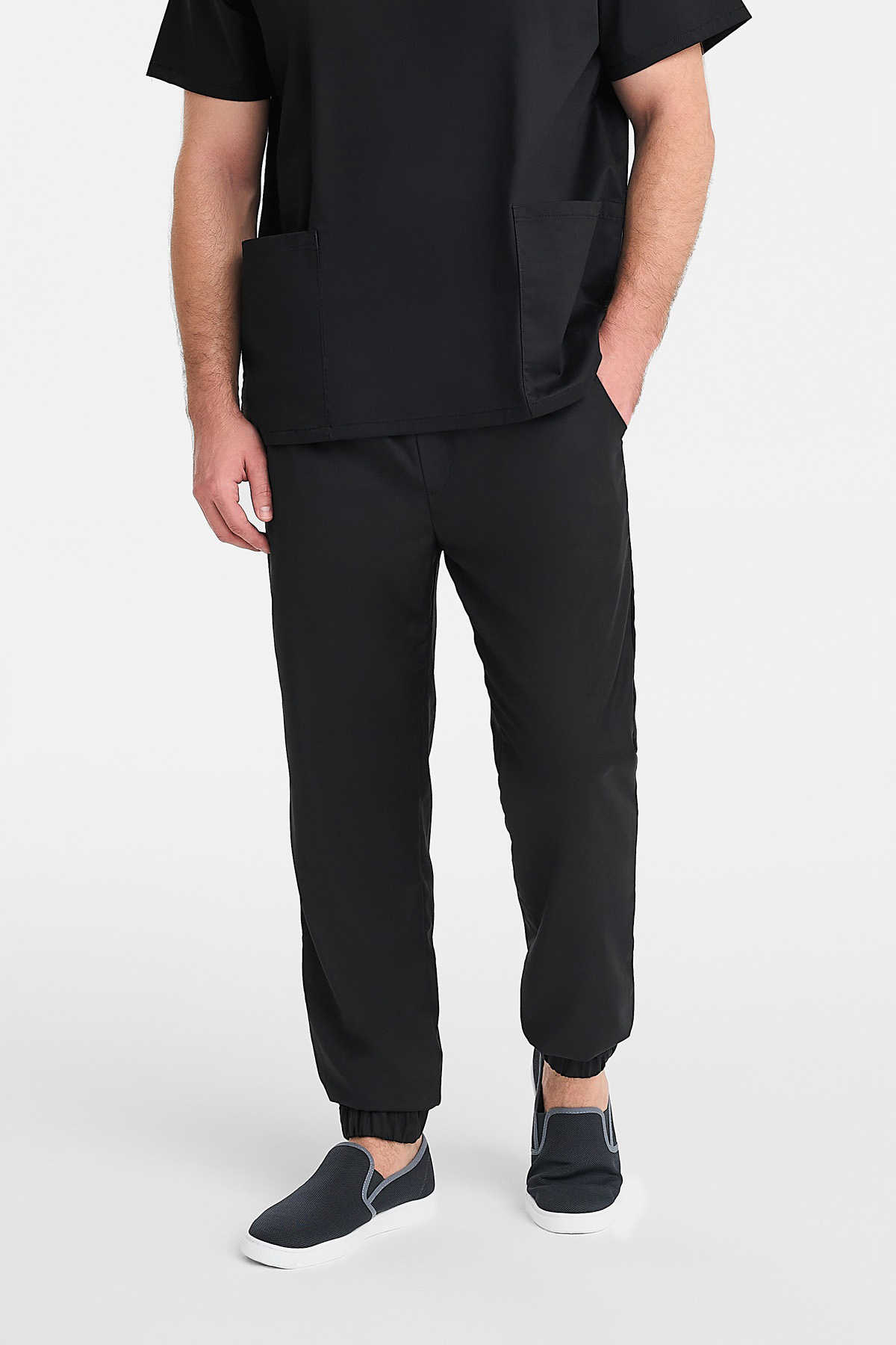 В основе дизайна — зауженный крой, который формирует аккуратный и современный силуэт. Широкий эластичный пояс со шнурком для регулировки гарантирует идеальную посадку, а эластичные манжеты снизу мягко фиксируют брючину. Функциональность модели поддерживают боковые и задние накладные карманы.
