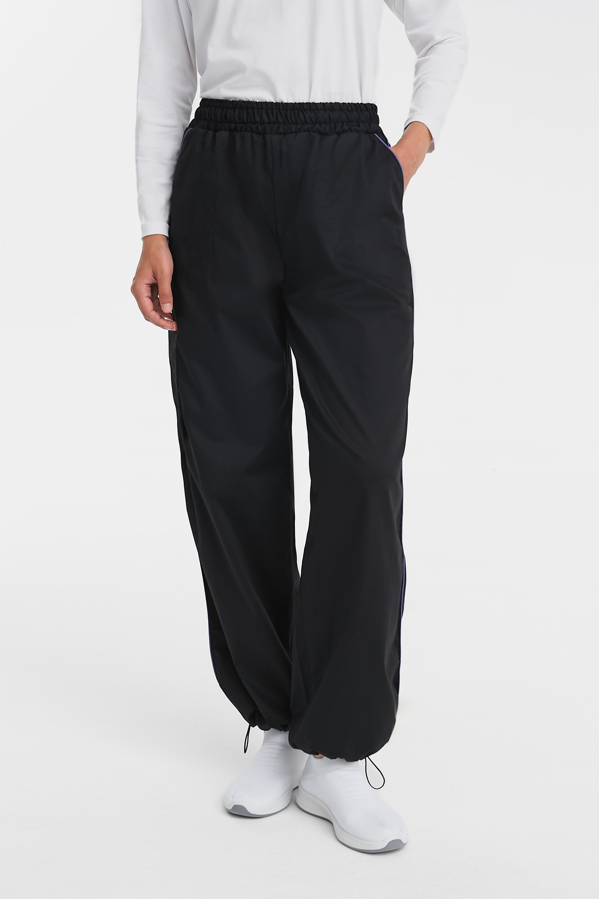 В основе дизайна — объемный крой оверсайз, который акцентирован контрастным кантом по боковому шву, создающим динамичную вертикаль. Регулируемый низ на утяжках позволяют адаптировать посадку и силуэт. Функциональность модели подчеркивают вместительные карго-карманы, оснащенные дополнительным отделением на молнии для ценных мелочей.